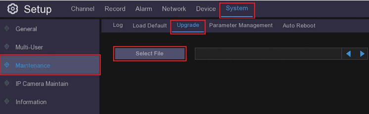 Now click System, then Maintenance, then Upgrade. Click Select File.