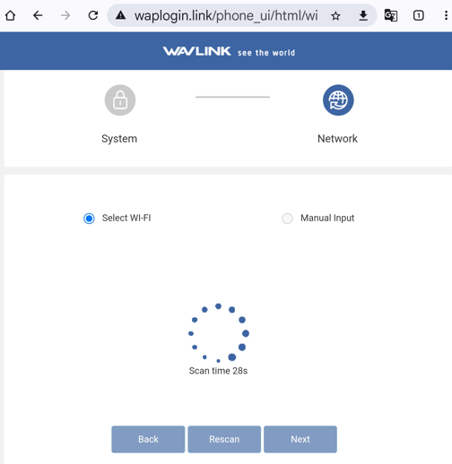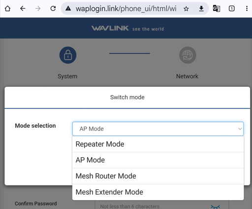 - Wait for the WAVLINK admin page to load (Android / PC: open a browser and go to 192.168.30.1)