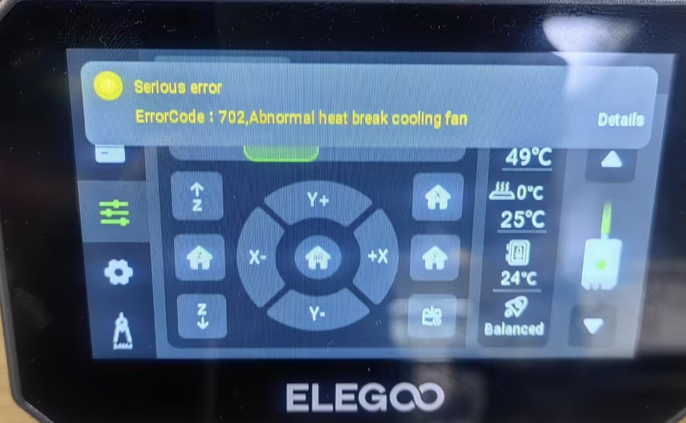 We can check here whether it is running. As long as the hot end is heated, the fan will start running immediately.